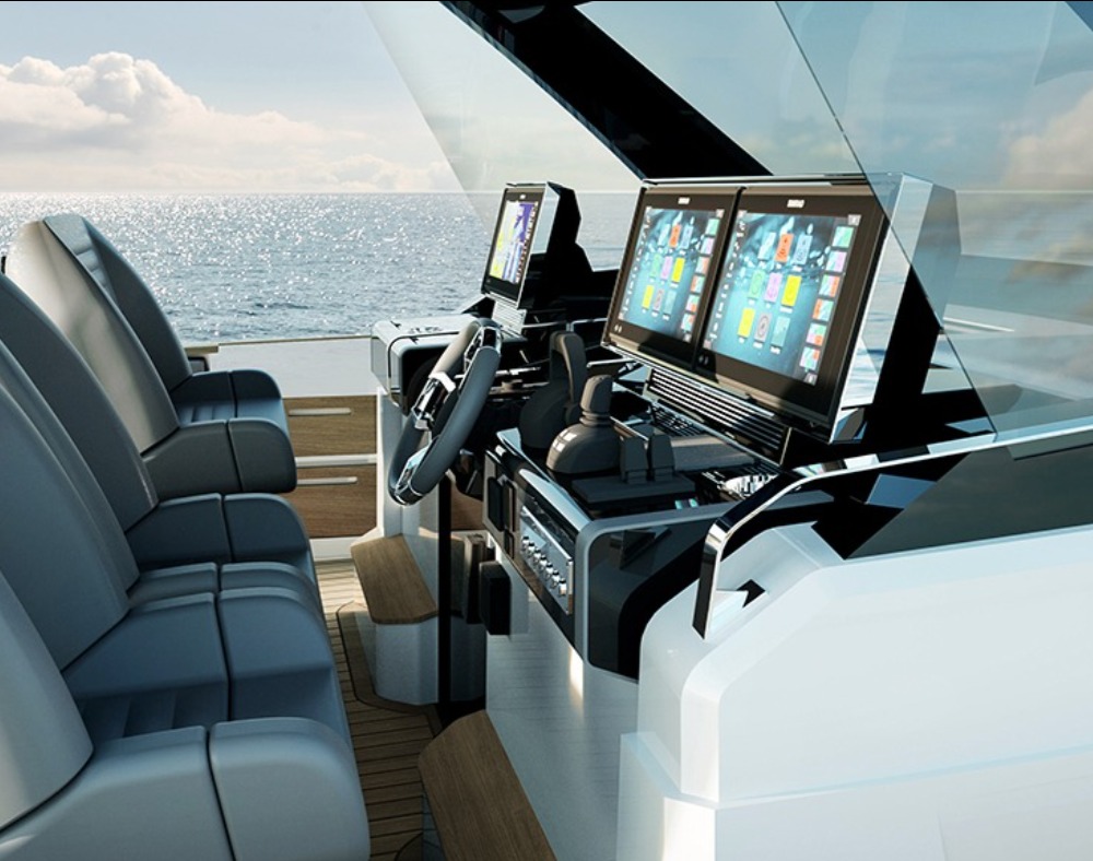 Dashboard, colour: signal white (according to colour card), with foot support, handrail, glovebox, cupholder, horn, switch panel, engine room fire extinguisher system, 2 emergency fuel cut off (pantry).
